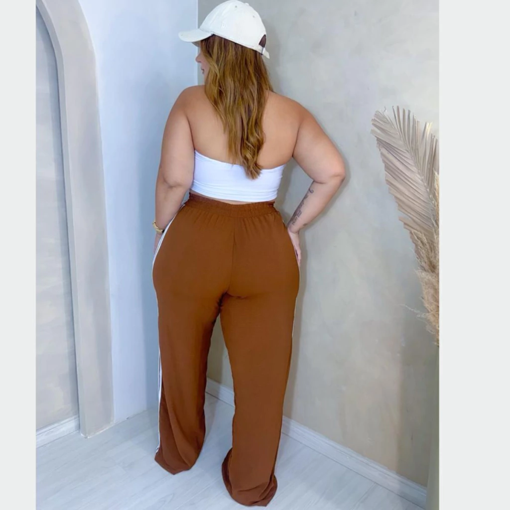 Calça Pantalona Plus Size Crepe Duna Listras – Conforto, Estilo e Modelagem Perfeita