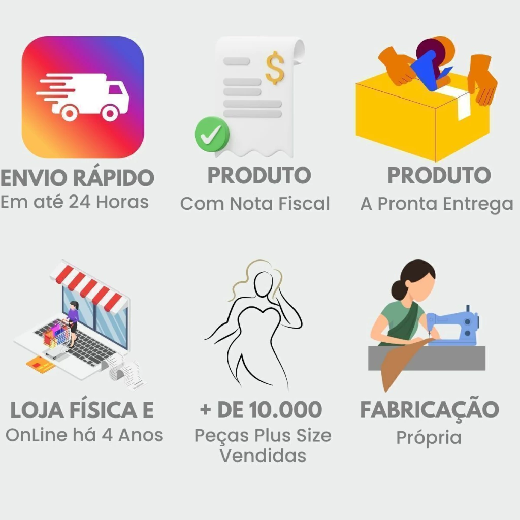 - Modelagem Plus Size criada para realçar suas curvas, aumentando a autoconfiança.
